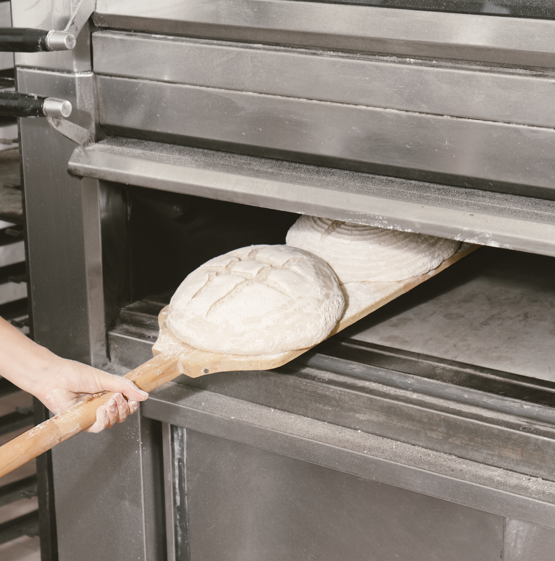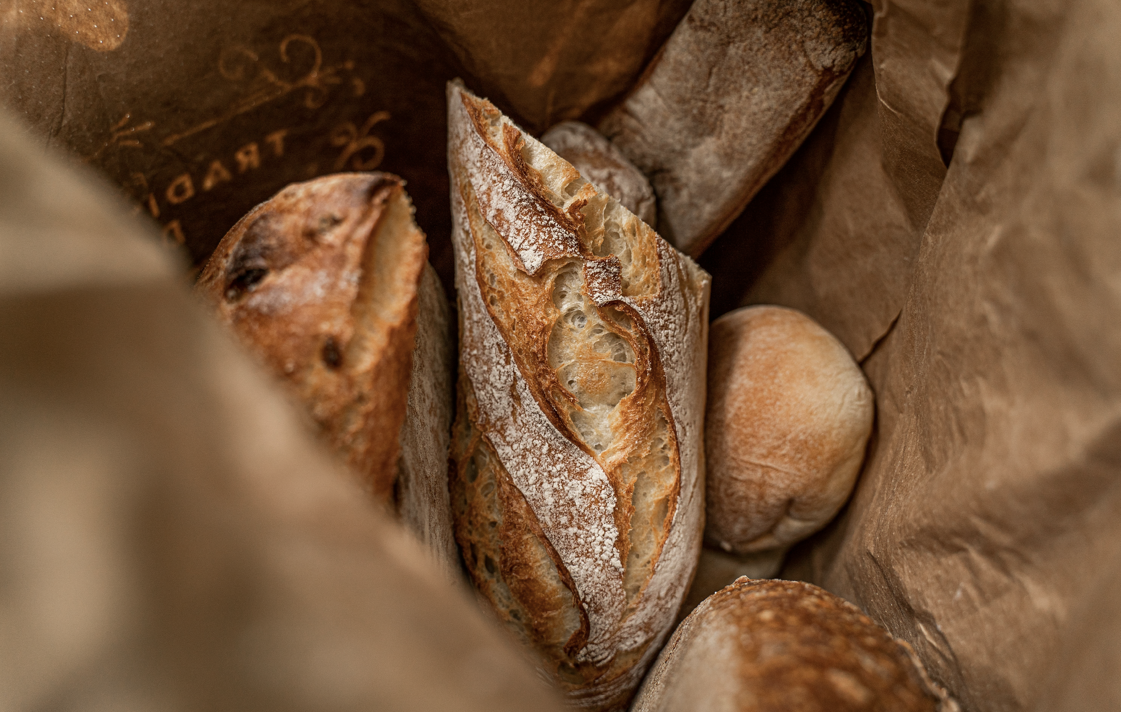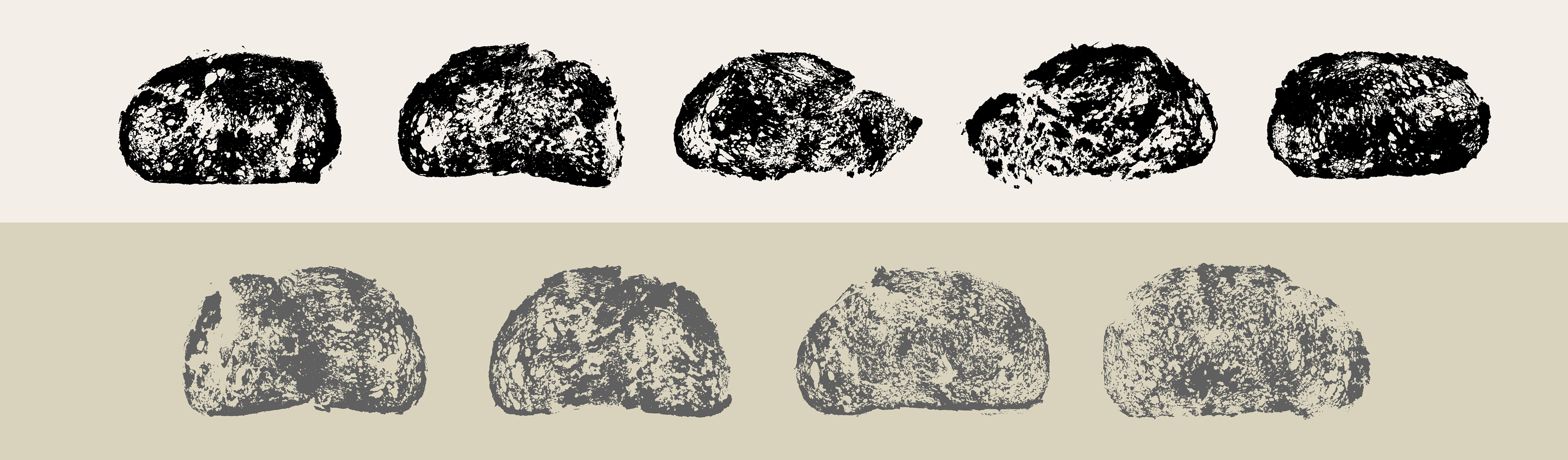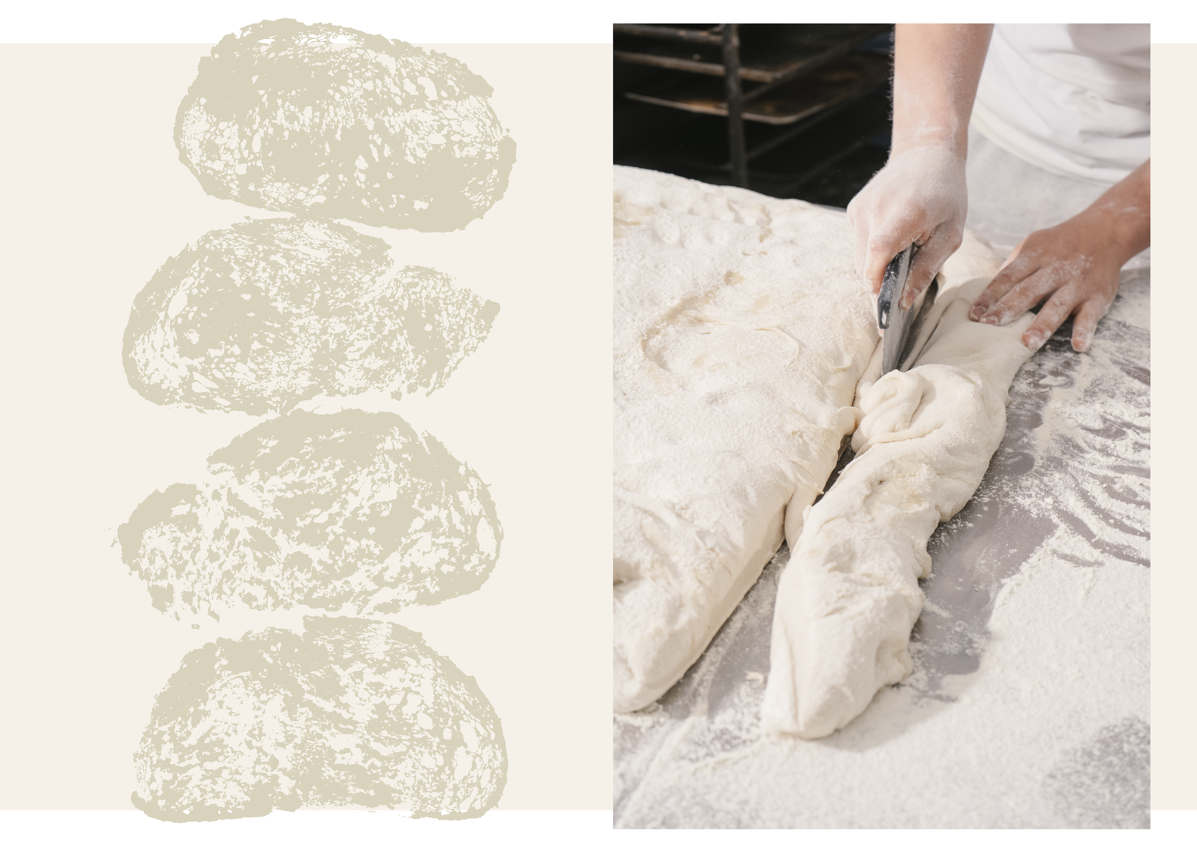 The visual identity follows the same rhythm. The images show the bakery’s real process, with natural light and texture as a central element. From this approach, the bread’s own alveoli were used as a graphic tool. We stamped the bread itself to create an original texture, generated directly from the process rather than from an external graphic resource.