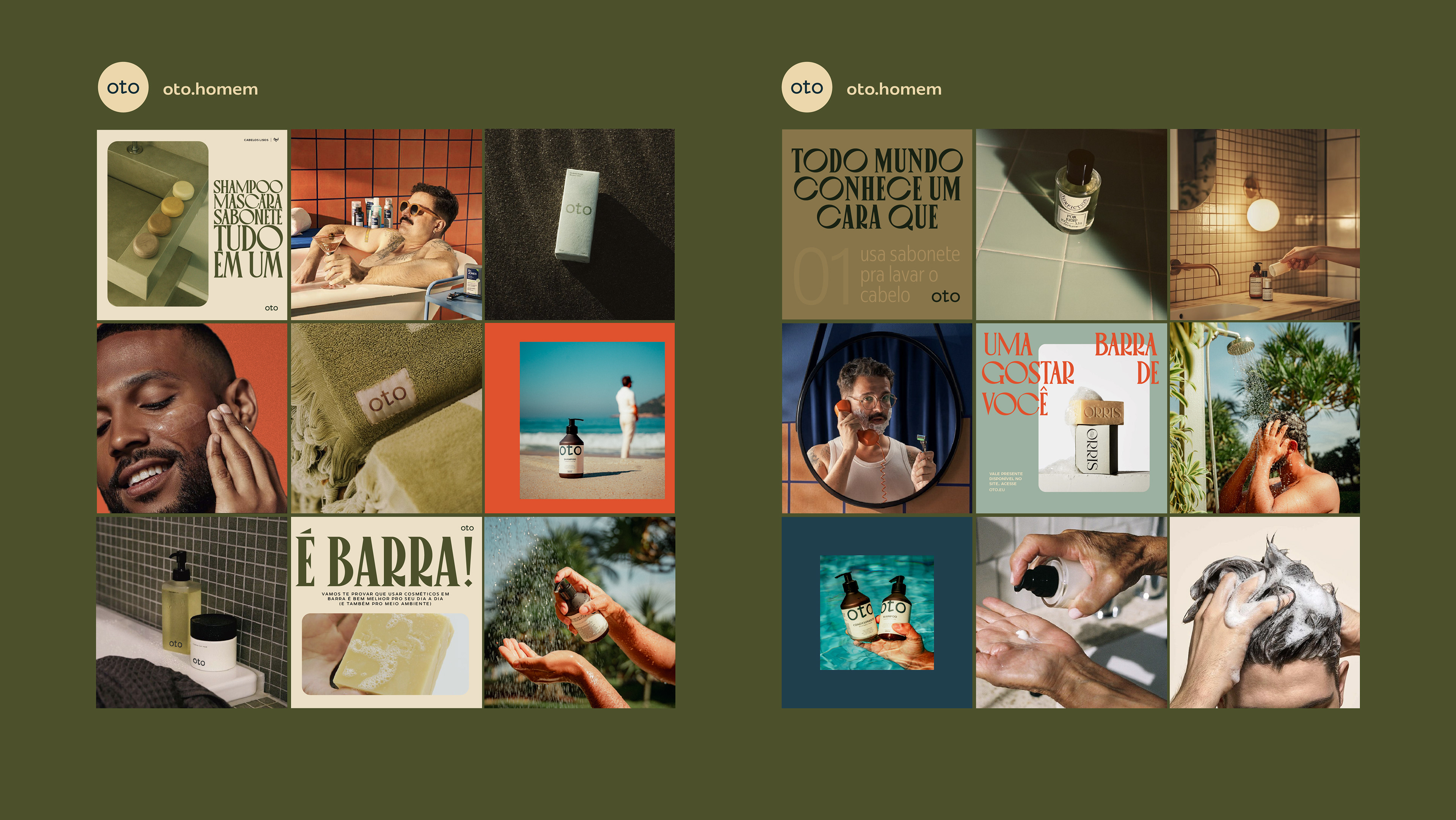 The name OTO comes from the abbreviation of “One to One” — “Um pra um” — and reflects the brand’s essence: individual care as the starting point to transform the way a man presents himself to the world.