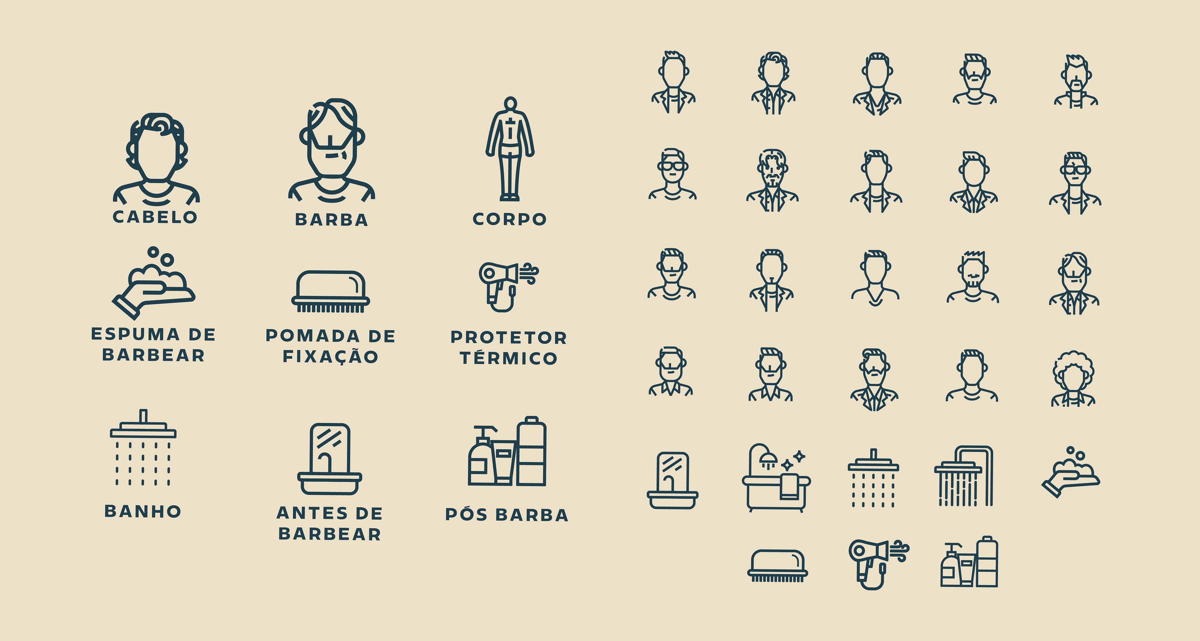 Na criação das embalagens, nossa proposta foi pensar no uso dos produtos no dia a dia e simplificar essa rotina de autocuidado. Por isso, os produtos foram numerados, trazendo prático o uso mais intuitivo; uma resposta direta àquele clássico questionamento: “Qual homem nunca lavou o cabelo com sabonete?”
